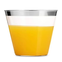 Vente en gros de gobelets de fête en plastique transparent jetable à bord doré et argenté pour l'eau, le vin et les mariages.
