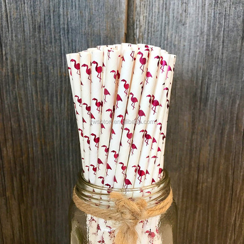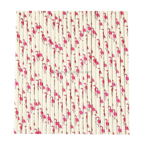 SOTON Certifié Eco Papier Pailles 9mm Biodégradable Logo Personnalisé Pailles à Boire pour Cocktail En Vrac Flamingo Style