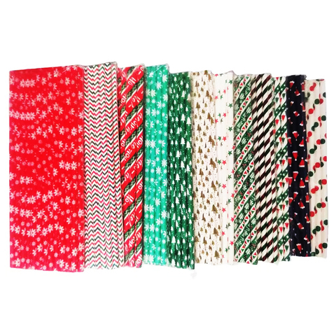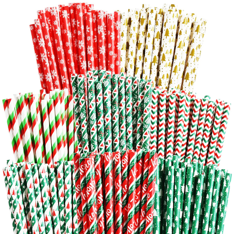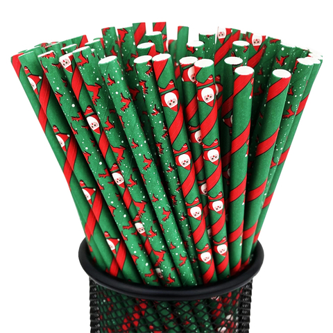 SOTON Pailles en papier de Noël écologiques Conception de flocon de neige de père Noël imprimé personnalisé Pailles à boire rayées de fête biodégradables