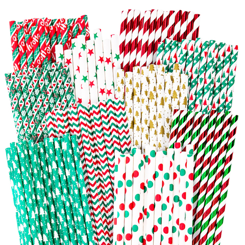 Soton Giáng Sinh Giấy Rơm Uống Ống Hút Sọc Trang Trí Ống Hút Số Lượng Lớn Cho Năm Mới Giáng Sinh Bên Uống