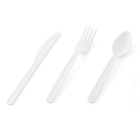 OEM مخصص 100% صديق للبيئة طائرة البلاستيك ملعقة شوكة وسكين كيت قابلة للتحلل أواني مائدة مجموعة ادوات المائدة القابلة للتحلل الحيوي بلاستيك الحزم